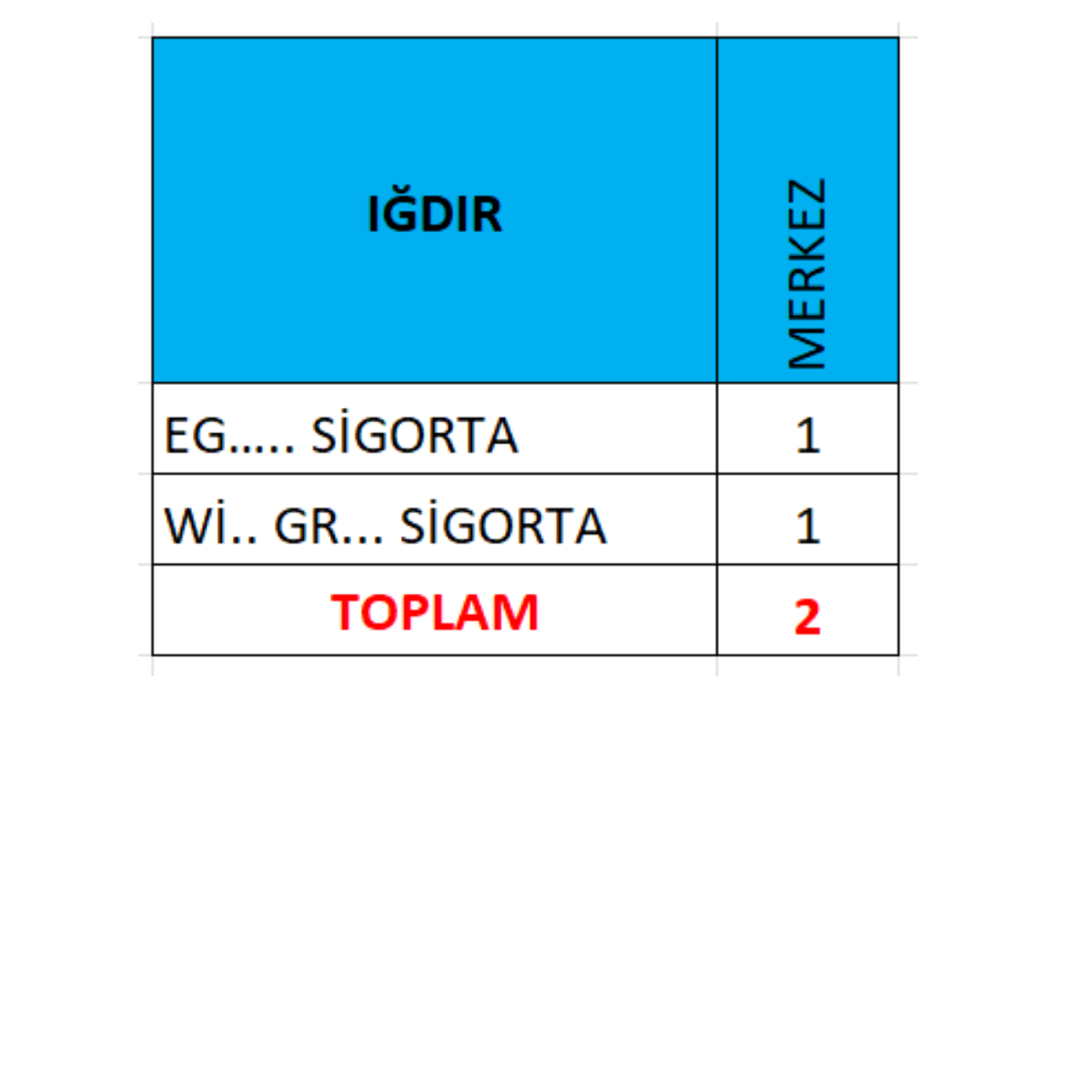 Iğdır İl ve İlçe Bazlı Sigorta Acente, Sigorta Broker Şube Sayısı